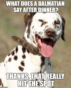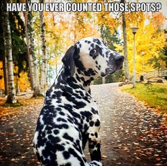 Share Share on Facebook Share on Twitter Pinterest Email Spread the love Have you ever counted those spots? What does a Dalmatian say after dinner? Dalmatian thoughts. 1 2 3 4 5 Dalmatianmemes 0 Dylan Harper Website Related Posts Is it Too Hot to Ride Your Horse? October 4, 2022 Can Horses Eat Pumpkin? October 4, 2022 Cow Killer Ants and Horses October 4, 2022 Write A Comment Cancel Reply Save my name, email, and website in this browser for the next time I comment. Δ