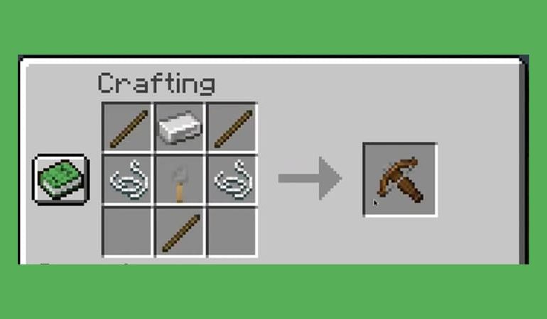 Crossbows are yet another ranged weapon in Minecraft which can be obtained by either crafting, natural generation, trading from villagers, or from drops after killing pillagers and piglins. To craft crossbows, open the crafting table and place a tripwire hook in the center of the 3×3 grid.