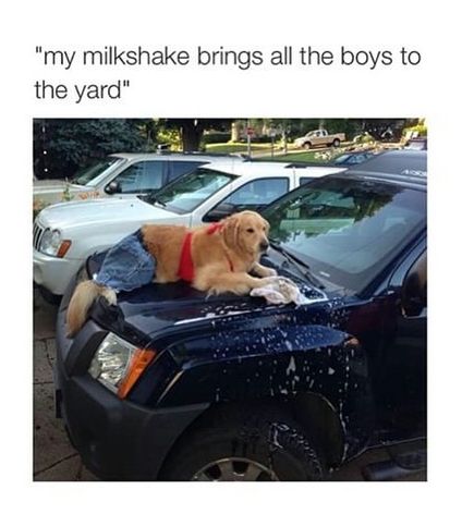My milkshake brings all the boys to the yard. My friend`s dogs pick up a pillow every time someone enters the house.