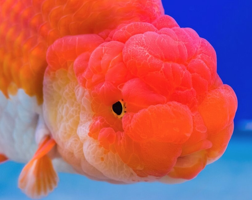 The heavenly or sky-eyed fish is a variety of goldfish from a Japanese breed, the ranchu. He inherits his ancestor’s characters with an inverted V-shaped caudal fin and a pair of bulging eyes from the telescopic fish and set upwards. The celestial fish’s name derives from the English celestial eye, whose eyes are directed toward the sky.