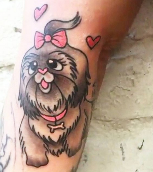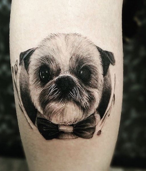 Black and white smiling dog tattoo