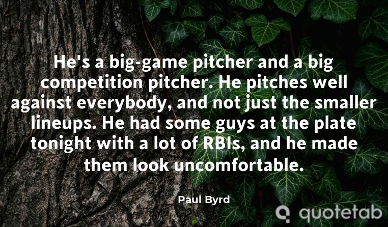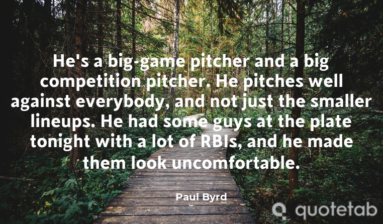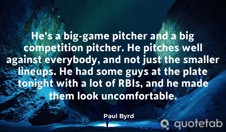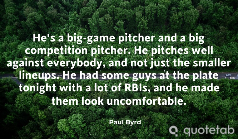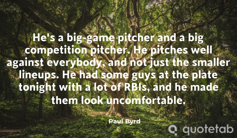 He's a big-game pitcher and a big competition pitcher. He pitches well against everybody, and not just the smaller lineups. He had some guys at the plate tonight with a lot of RBIs, and he made them look uncomfortable.