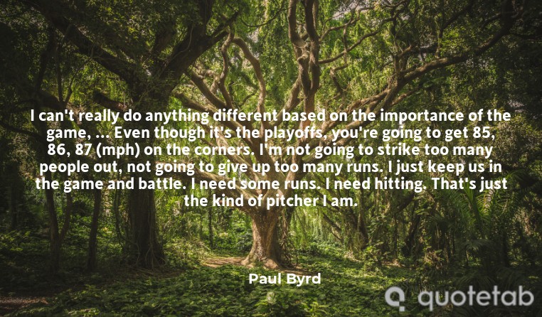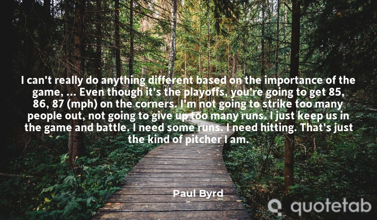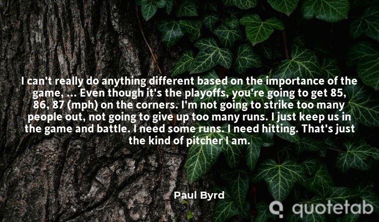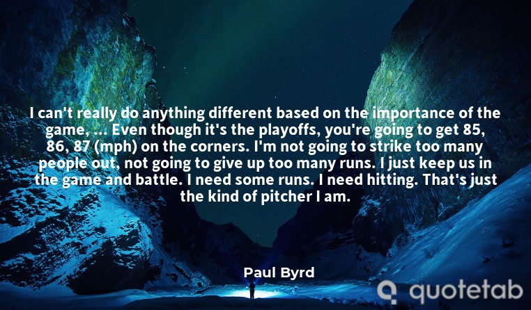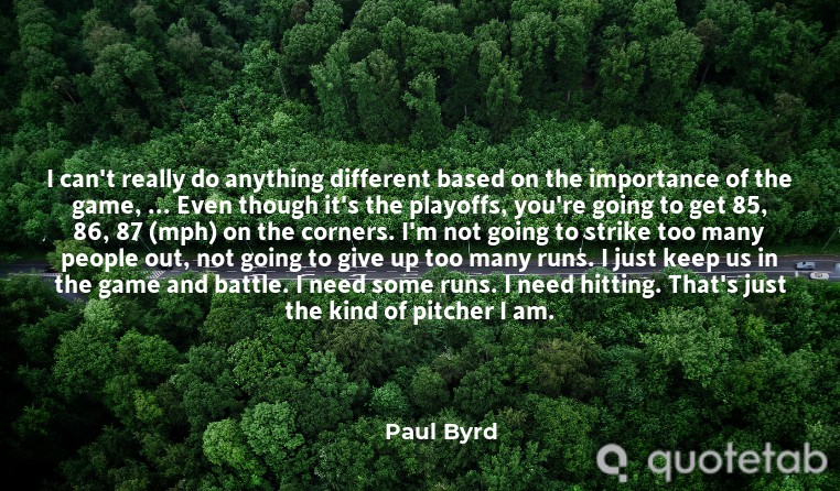 I can't really do anything different based on the importance of the game, ... Even though it's the playoffs, you're going to get 85, 86, 87 (mph) on the corners. I'm not going to strike too many people out, not going to give up too many runs. I just keep us in the game and battle. I need some runs. I need hitting. That's just the kind of pitcher I am.