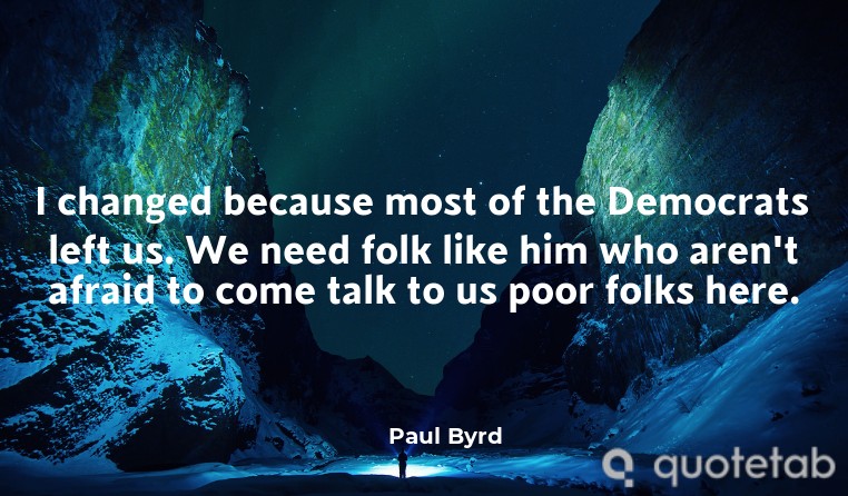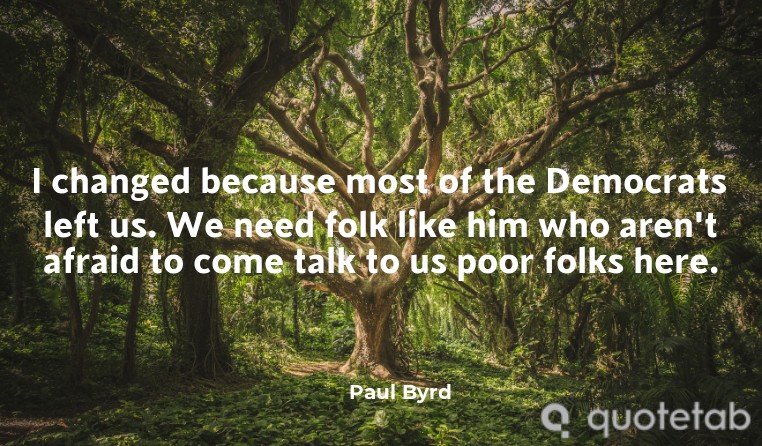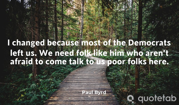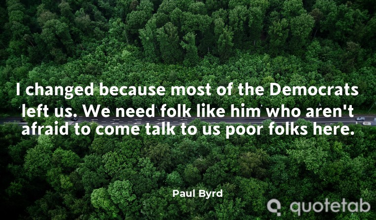 I changed because most of the Democrats left us. We need folk like him who aren't afraid to come talk to us poor folks here.