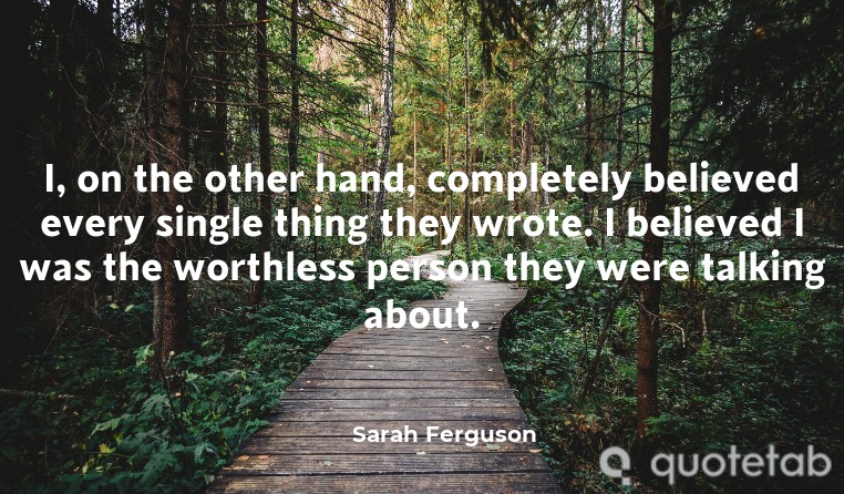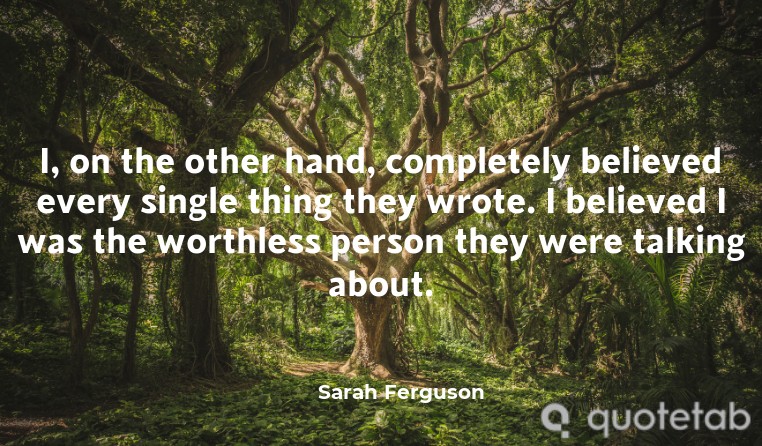 I, on the other hand, completely believed every single thing they wrote. I believed I was the worthless person they were talking about.