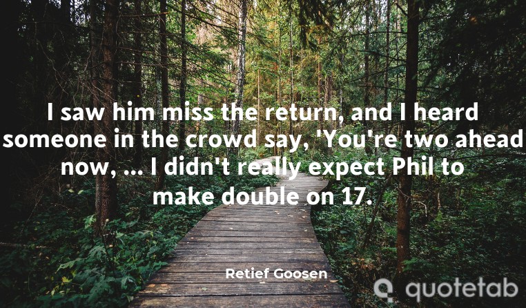 I saw him miss the return, and I heard someone in the crowd say, 'You're two ahead now, ... I didn't really expect Phil to make double on 17.