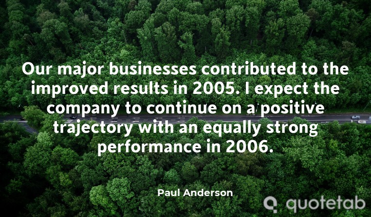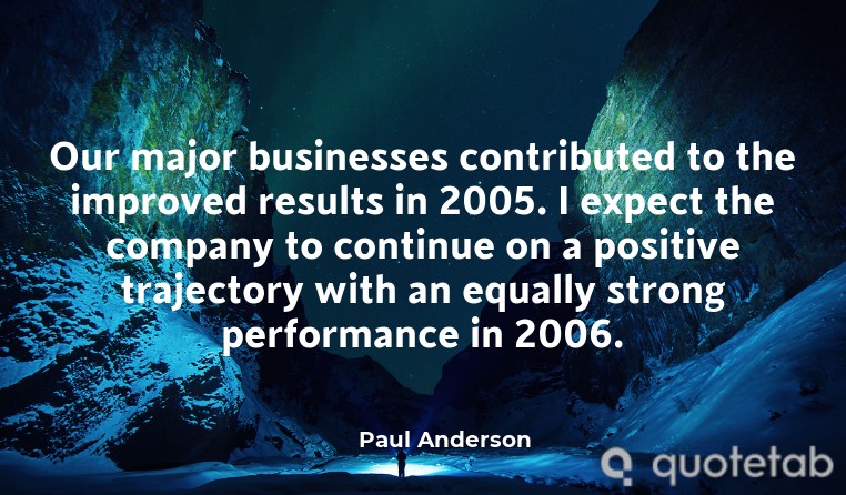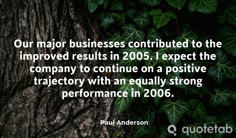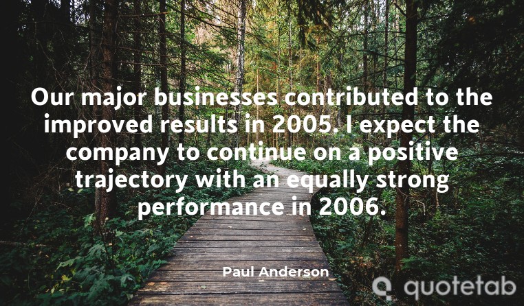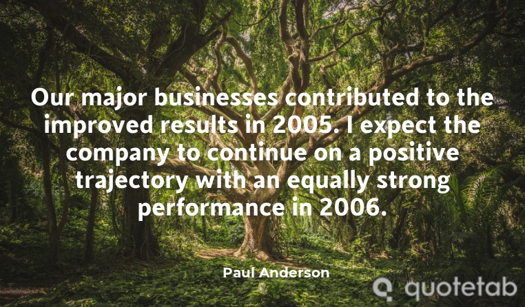 Our major businesses contributed to the improved results in 2005. I expect the company to continue on a positive trajectory with an equally strong performance in 2006.