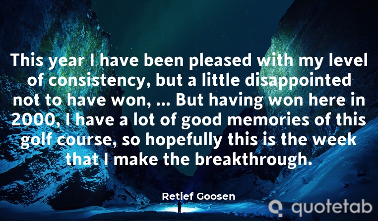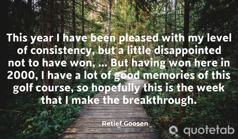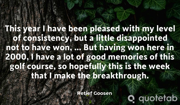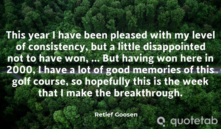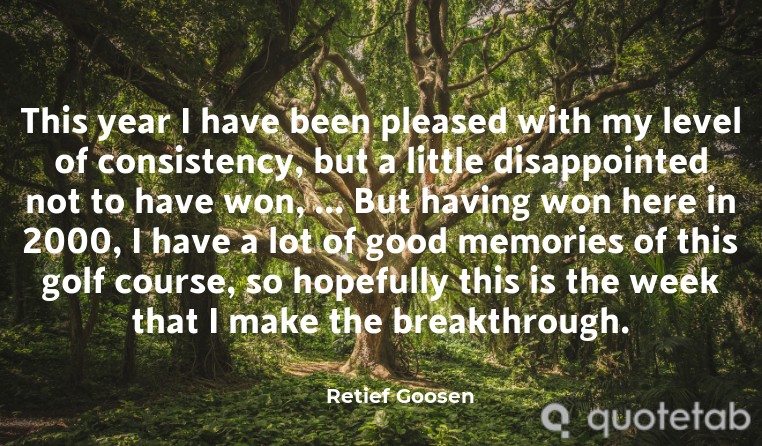 This year I have been pleased with my level of consistency, but a little disappointed not to have won, ... But having won here in 2000, I have a lot of good memories of this golf course, so hopefully this is the week that I make the breakthrough.