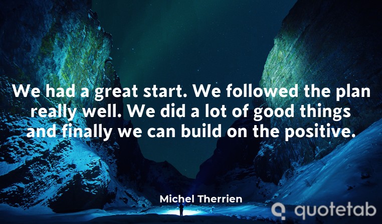 We had a great start. We followed the plan really well. We did a lot of good things and finally we can build on the positive.