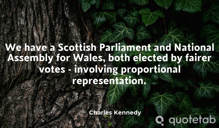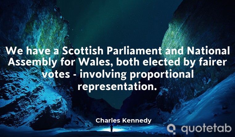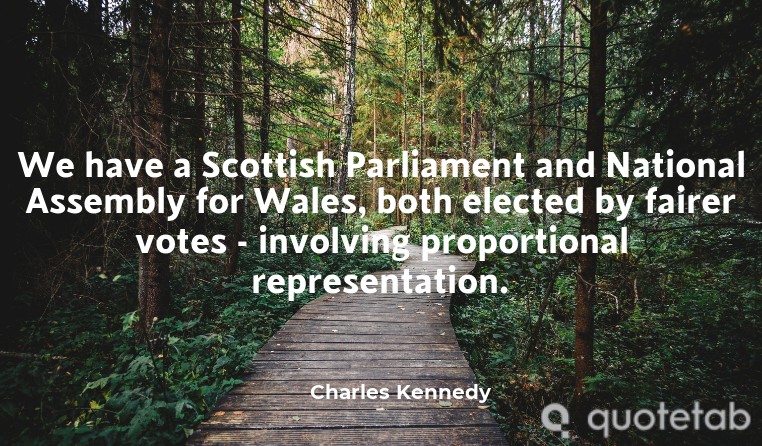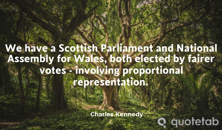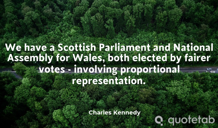 We have a Scottish Parliament and National Assembly for Wales, both elected by fairer votes - involving proportional representation.