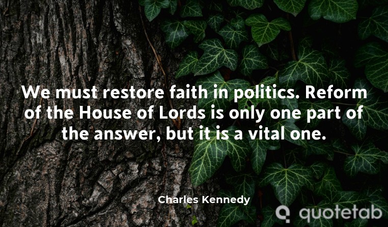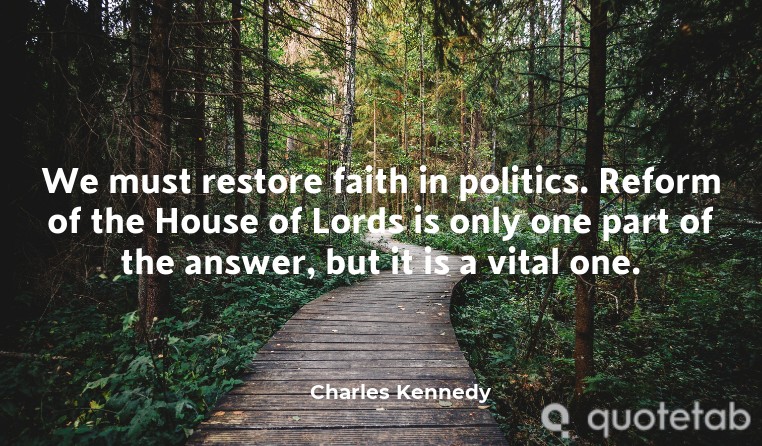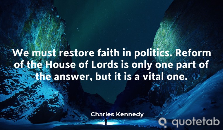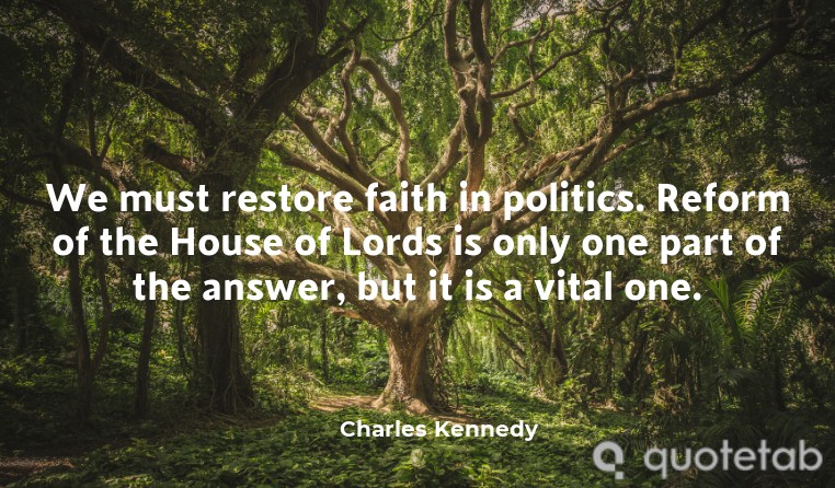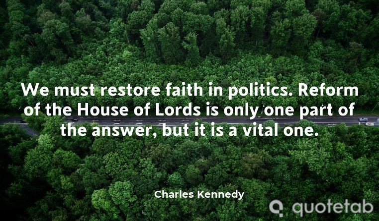We must restore faith in politics. Reform of the House of Lords is only one part of the answer, but it is a vital one.