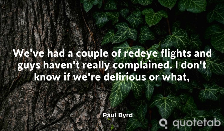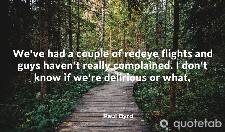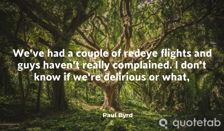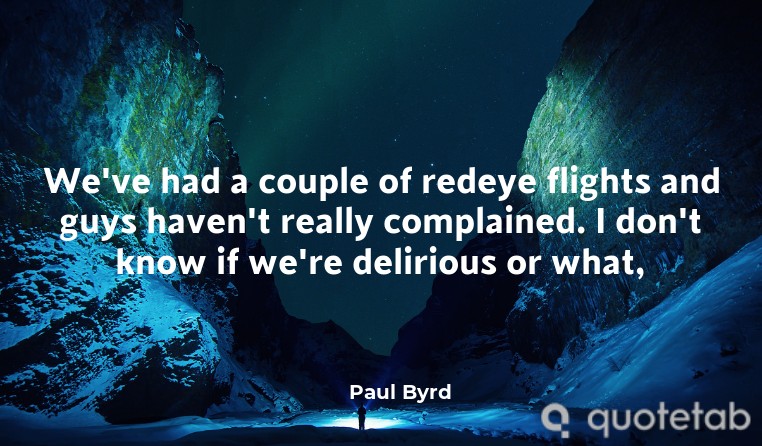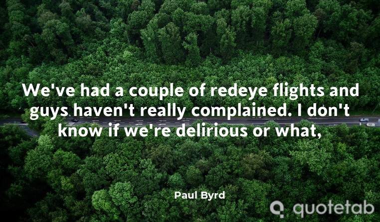 We've had a couple of redeye flights and guys haven't really complained. I don't know if we're delirious or what,