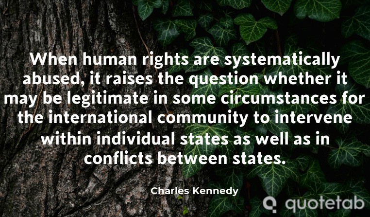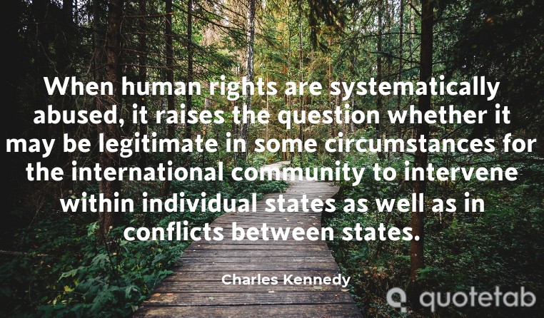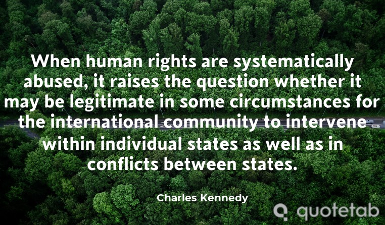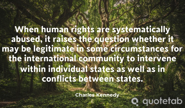 When human rights are systematically abused, it raises the question whether it may be legitimate in some circumstances for the international community to intervene within individual states as well as in conflicts between states.