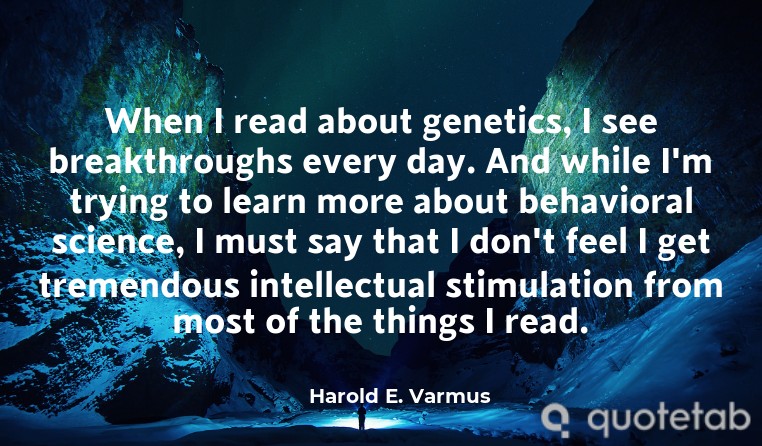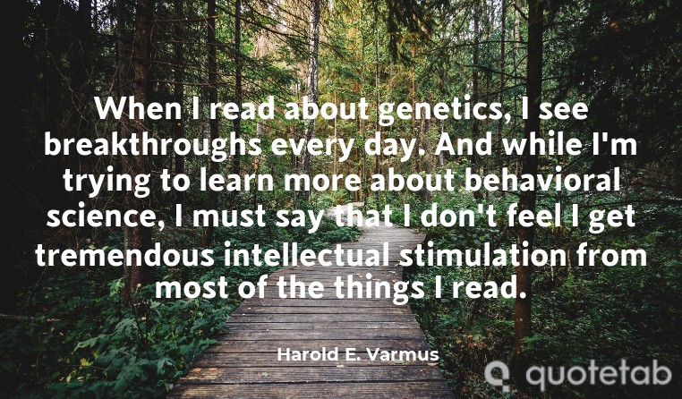 When I read about genetics, I see breakthroughs every day. And while I'm trying to learn more about behavioral science, I must say that I don't feel I get tremendous intellectual stimulation from most of the things I read.
