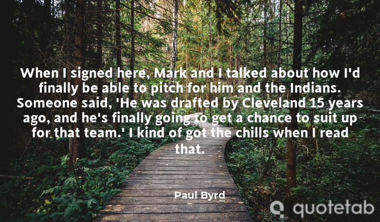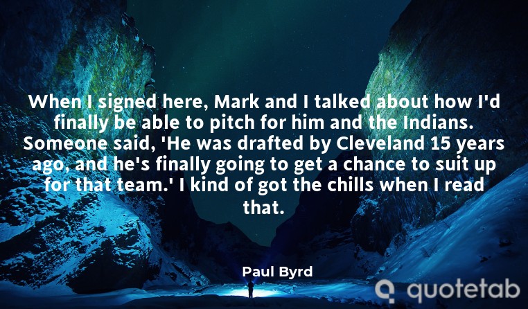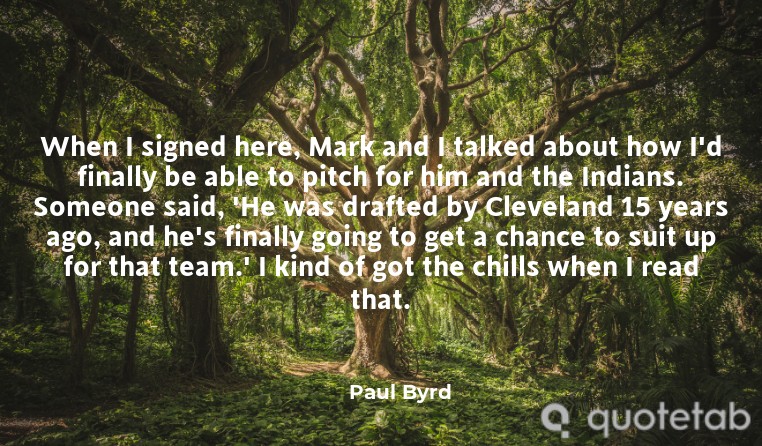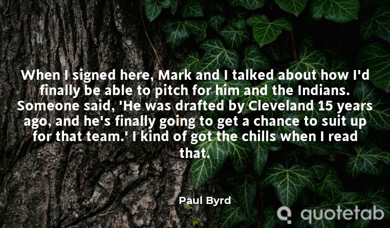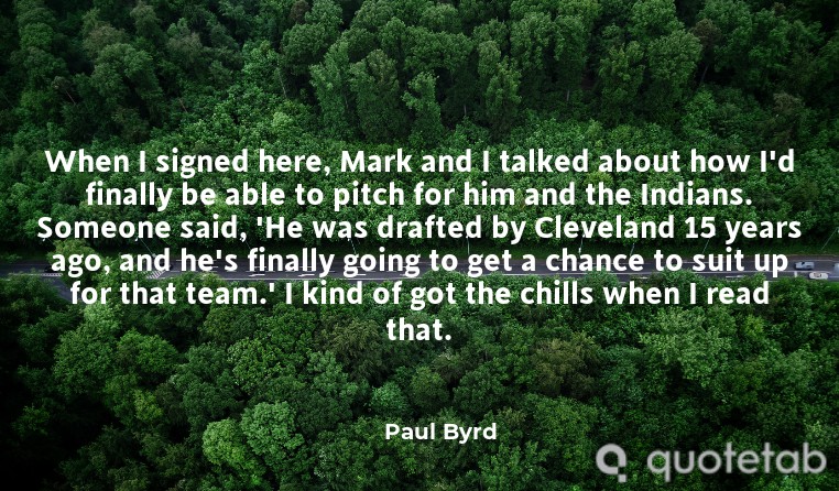 When I signed here, Mark and I talked about how I'd finally be able to pitch for him and the Indians. Someone said, 'He was drafted by Cleveland 15 years ago, and he's finally going to get a chance to suit up for that team.' I kind of got the chills when I read that.