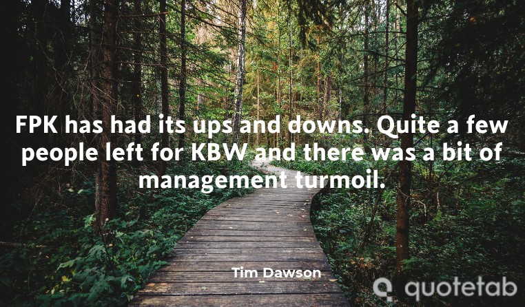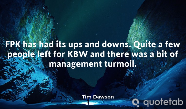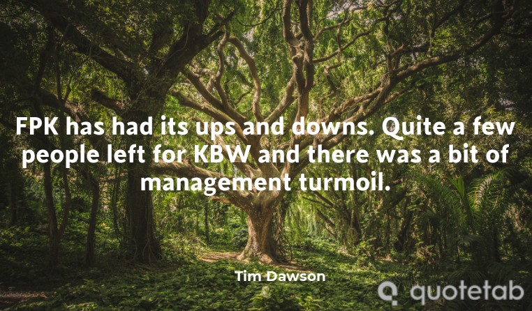 FPK has had its ups and downs. Quite a few people left for KBW and there was a bit of management turmoil.
