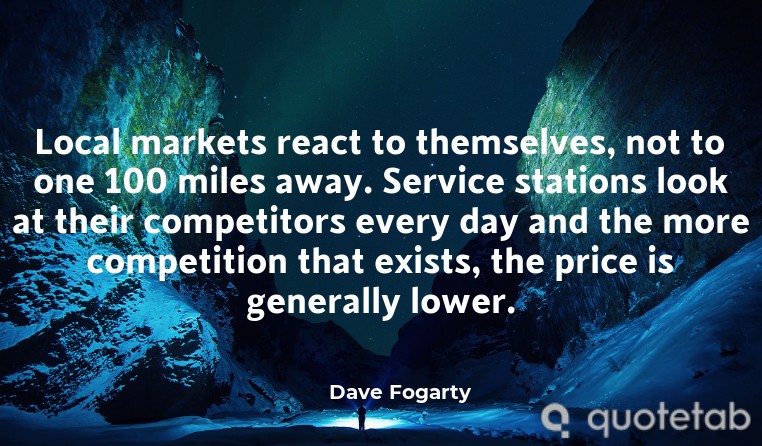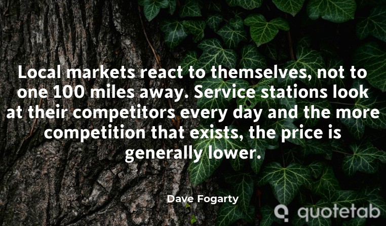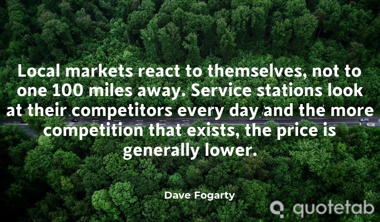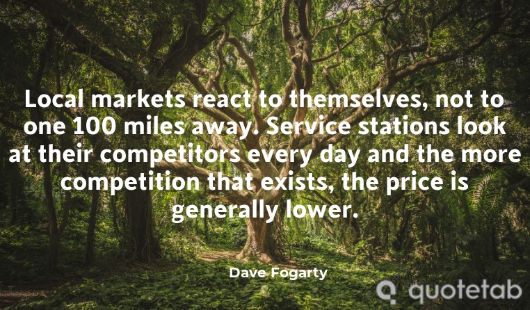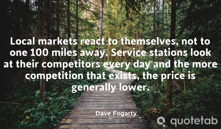 Local markets react to themselves, not to one 100 miles away. Service stations look at their competitors every day and the more competition that exists, the price is generally lower.