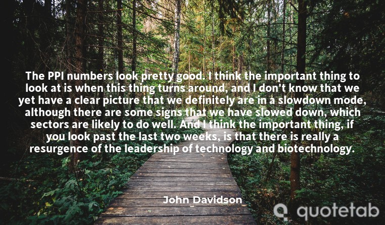 The PPI numbers look pretty good. I think the important thing to look at is when this thing turns around, and I don't know that we yet have a clear picture that we definitely are in a slowdown mode, although there are some signs that we have slowed down, which sectors are likely to do well. And I think the important thing, if you look past the last two weeks, is that there is really a resurgence of the leadership of technology and biotechnology.