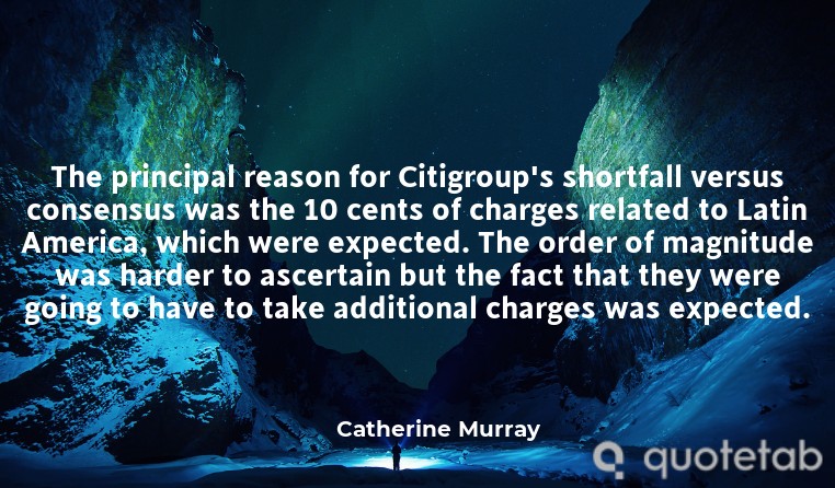 The principal reason for Citigroup's shortfall versus consensus was the 10 cents of charges related to Latin America, which were expected. The order of magnitude was harder to ascertain but the fact that they were going to have to take additional charges was expected.