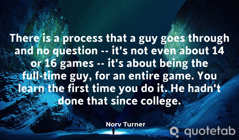 There is a process that a guy goes through and no question -- it's not even about 14 or 16 games -- it's about being the full-time guy, for an entire game. You learn the first time you do it. He hadn't done that since college.