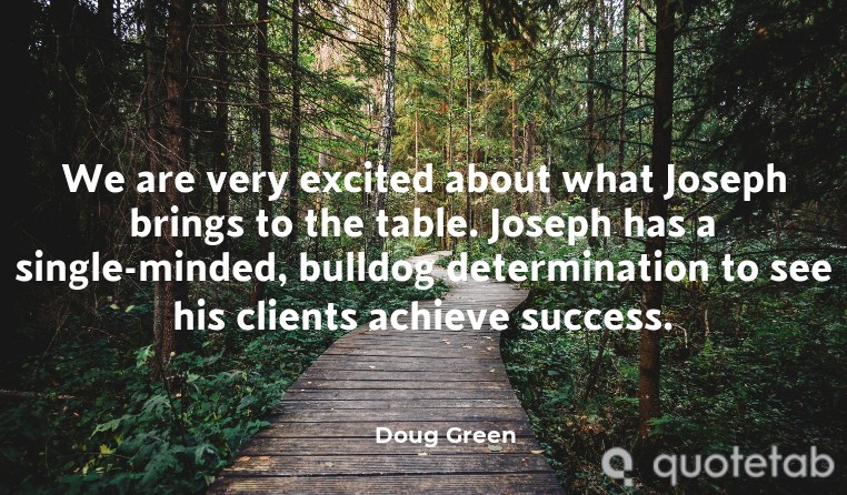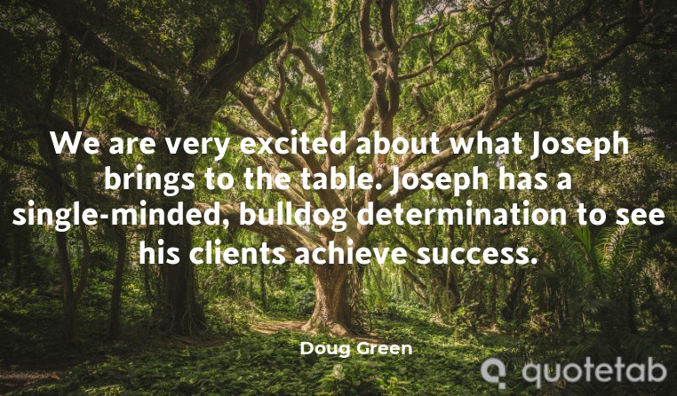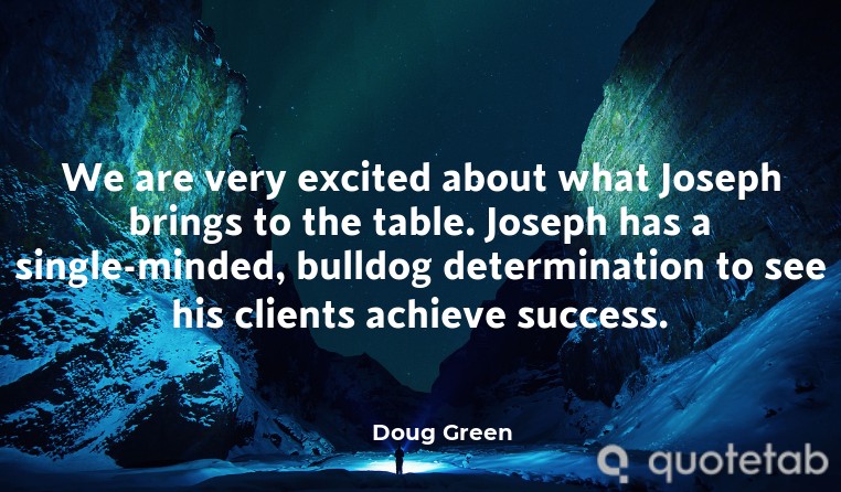 We are very excited about what Joseph brings to the table. Joseph has a single-minded, bulldog determination to see his clients achieve success.