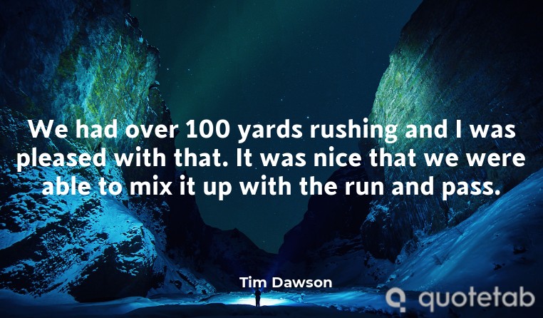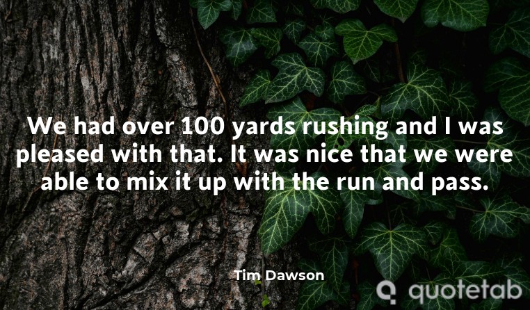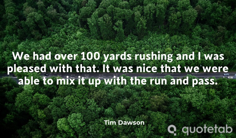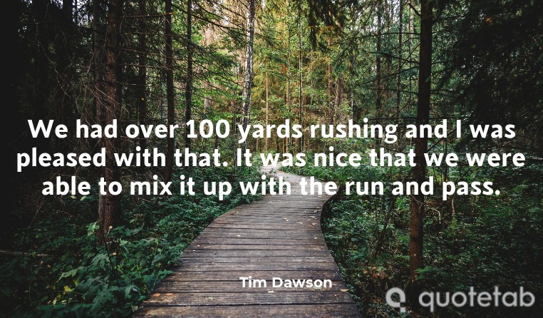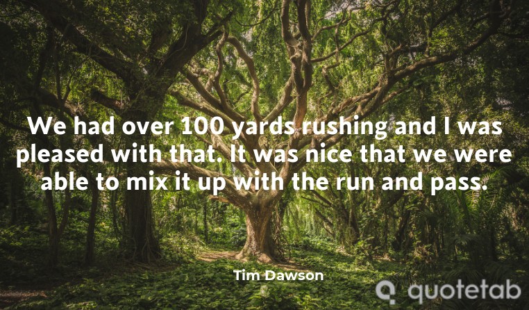 We had over 100 yards rushing and I was pleased with that. It was nice that we were able to mix it up with the run and pass.