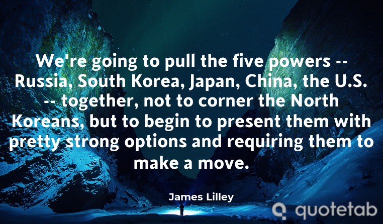 We're going to pull the five powers -- Russia, South Korea, Japan, China, the U.S. -- together, not to corner the North Koreans, but to begin to present them with pretty strong options and requiring them to make a move.