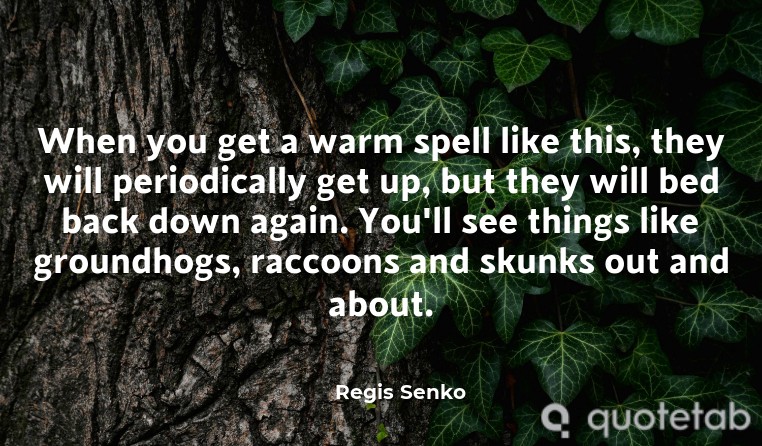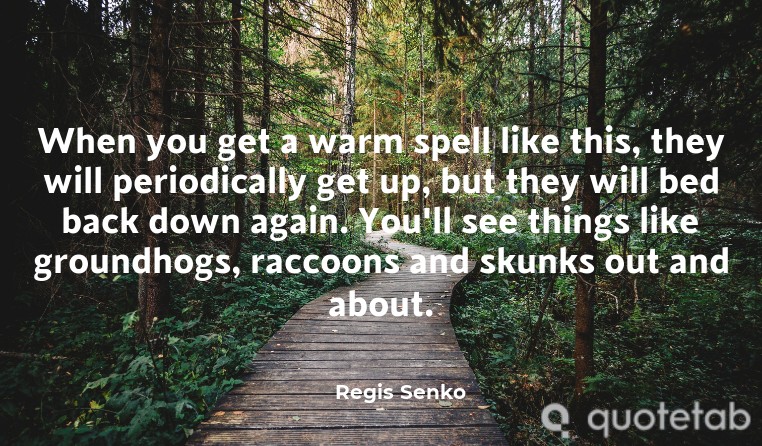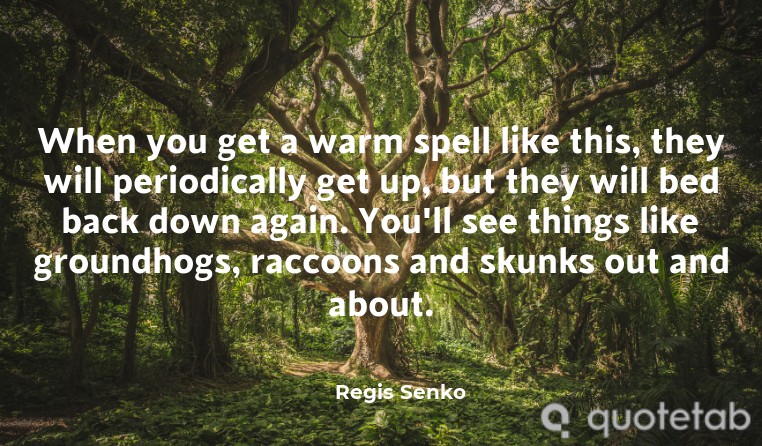 When you get a warm spell like this, they will periodically get up, but they will bed back down again. You'll see things like groundhogs, raccoons and skunks out and about.